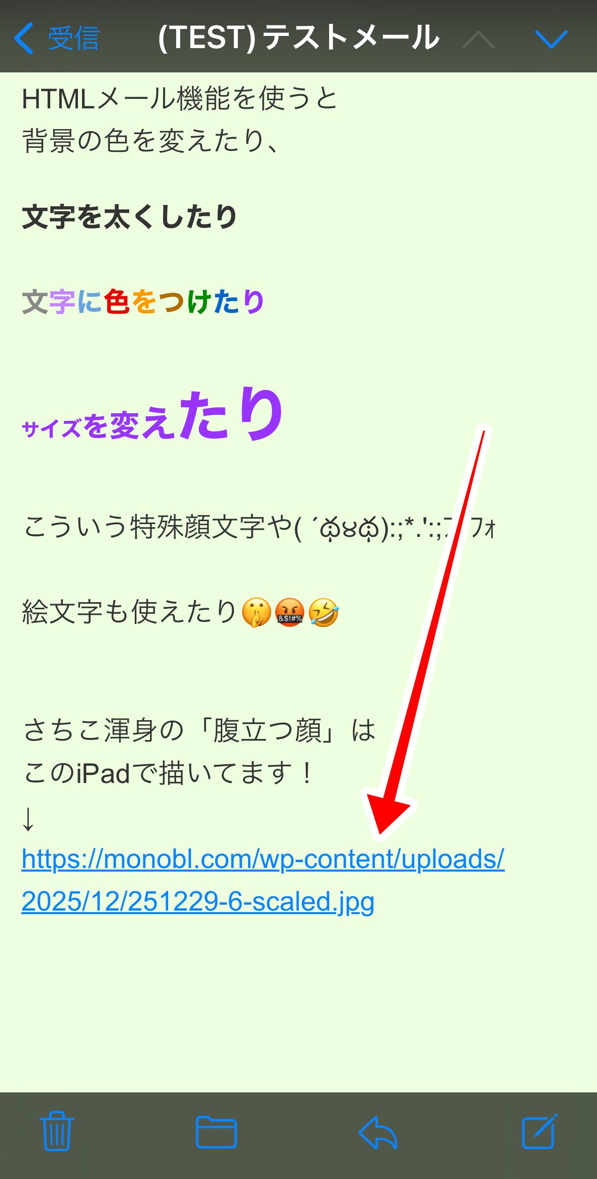 実際に読者さんに届くメールではこんな感じでただの文字列としてしか表示されず、